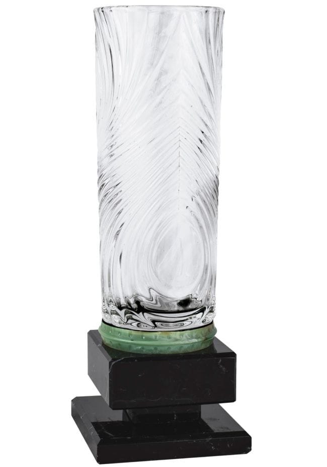 TROFEO JARRON CRISTAL ONDAS ARO VERDE CON PEANA DE MARMOLTRES TAMAÑOS DISPONIBLES