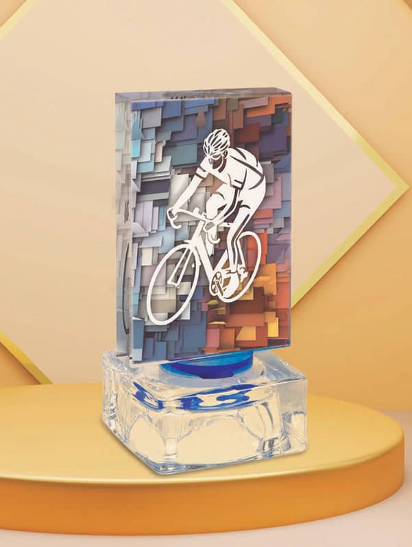 Aplique de cristal rectangular con peana y con posibilidad de poner motivo de cualquier deporte. Contamos con 3 tamaños