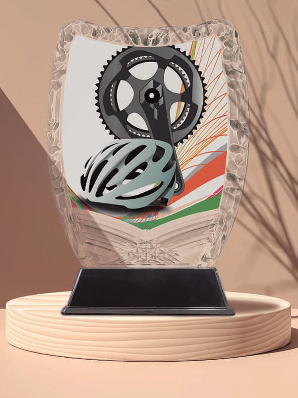 Aplique de metacrilato con base negra y con posibilidad de poner motivo de cualquier deporte.
