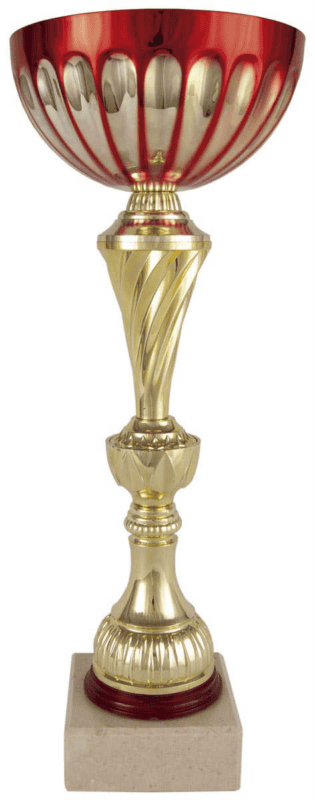 Copa comercial geraneo rojo y oro.