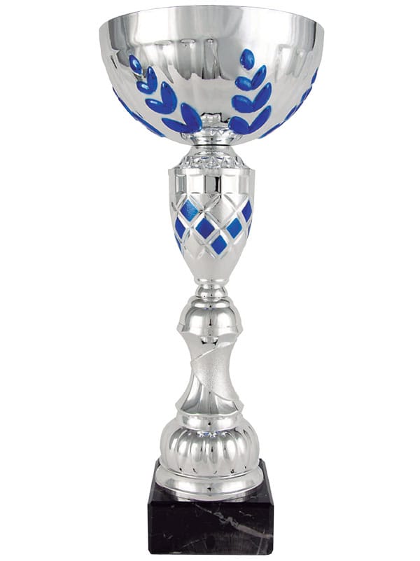 Copa comercial de hojas y nudos damero azul y palta. Contamos con 5 tamaños