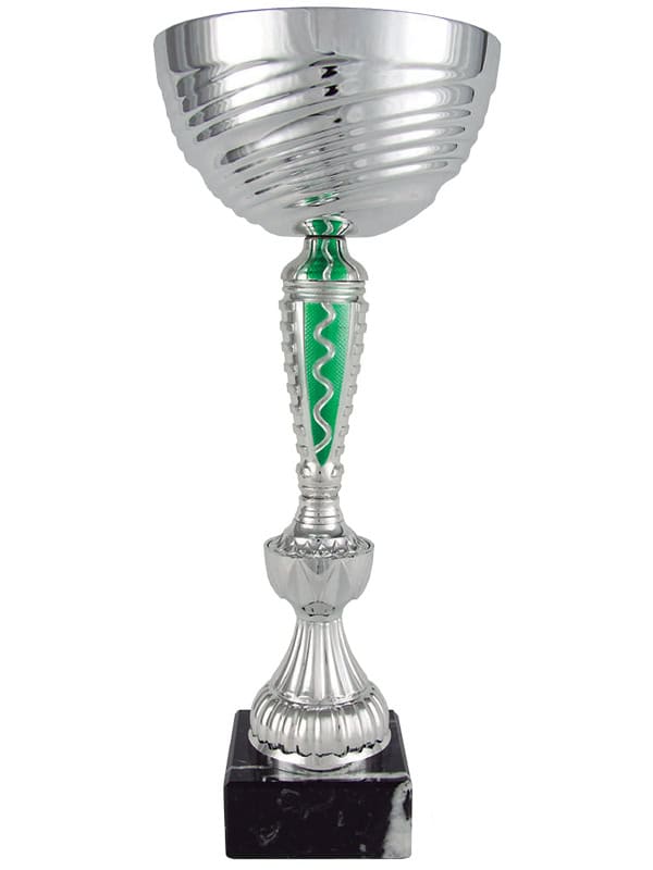 Copa comercial nudos y ondas de color verde y plata. Contamos con 5 tamaños