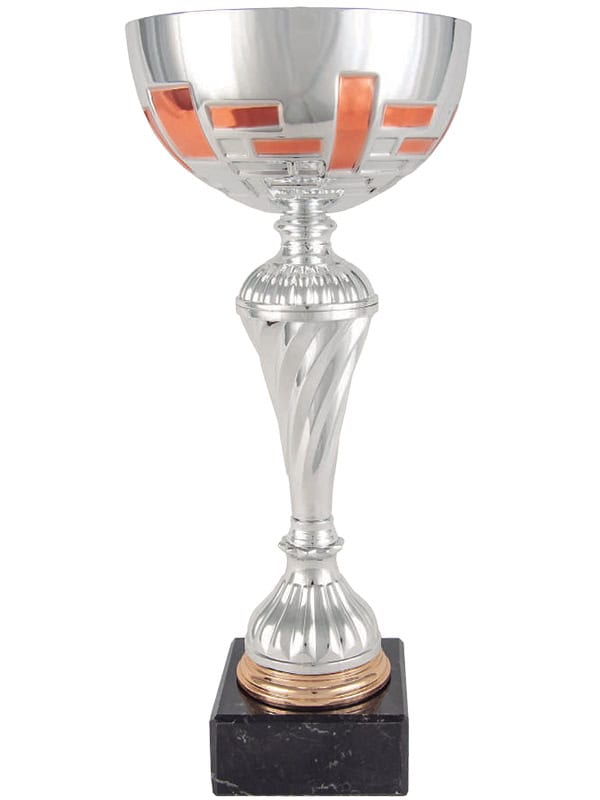 Copa comercial con rectángulos de cobre y rewa de plata.