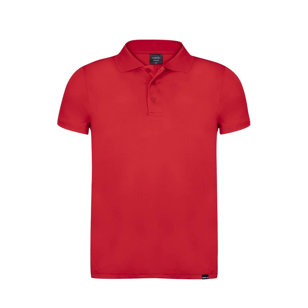 Polo transpirable en material 100% poliéster RPET de 180g/m2, elaborado a partir de plástico reciclado para así fomentar la reutilización de residuos plásticos y contribuir a la sostenibilidad del planeta. Con tres botones de cierre a juego, disponible en variada gama de colores y en tallas S, M, L, XL, XXL. Con distintivo RPET en etiqueta.
