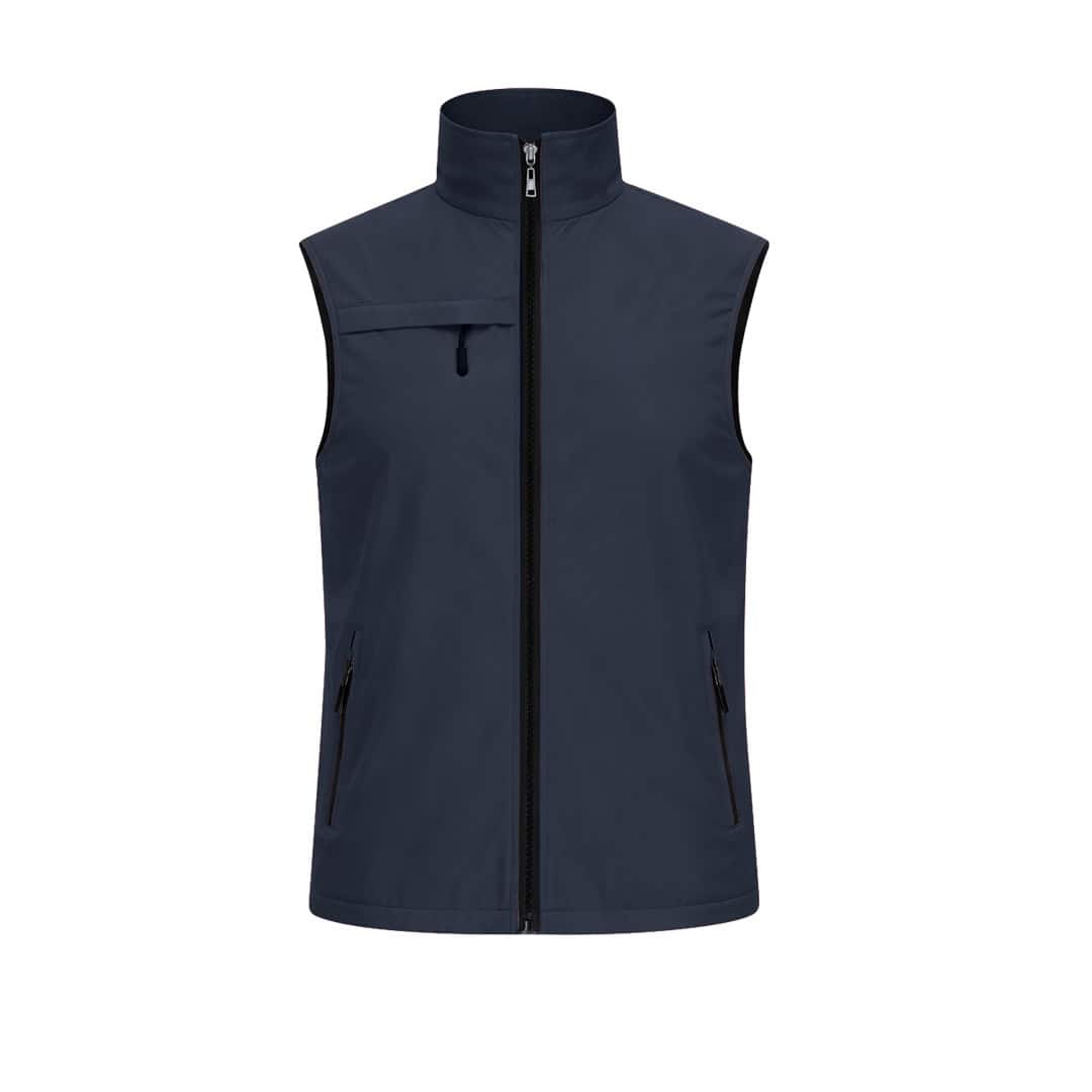 Chaleco Unisex de tejido ligero y transpirable con interior confeccionado en tejido de malla blanco. Con cremallera frontal negra y tirador plateado. Incluye un bolsillo exterior en el pecho derecho y dos bolsillos laterales con cremalleras y tiradores en color negro. Cuenta con media luna en el interior del cuello.