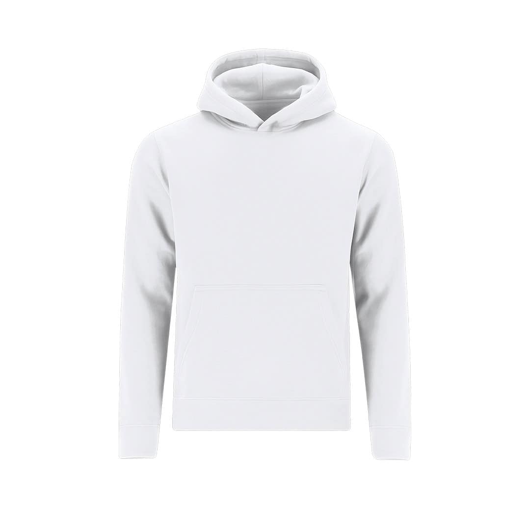 Sudadera infantil unisex con capucha forrada a tono de doble tejido. Confeccionada en algodón y poliester en suave felpa perchada de 280 g/m2. Con bolsillo tipo canguro. Cubrecosturas en el cuello. Puños y la cintura en punto canalé 1×1 con elastano para mayor ajuste y confort.