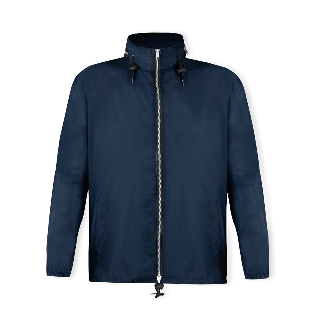 Impermeable en resistente poliéster 190T. Capucha con cordones de ajuste, integrada en compartimento con cremallera del cuello. Cierre principal de cremallera y cordón en cintura con accesorio de ajuste. Disponible en variada gama de colores y en tallas M, L, XL, XXL.