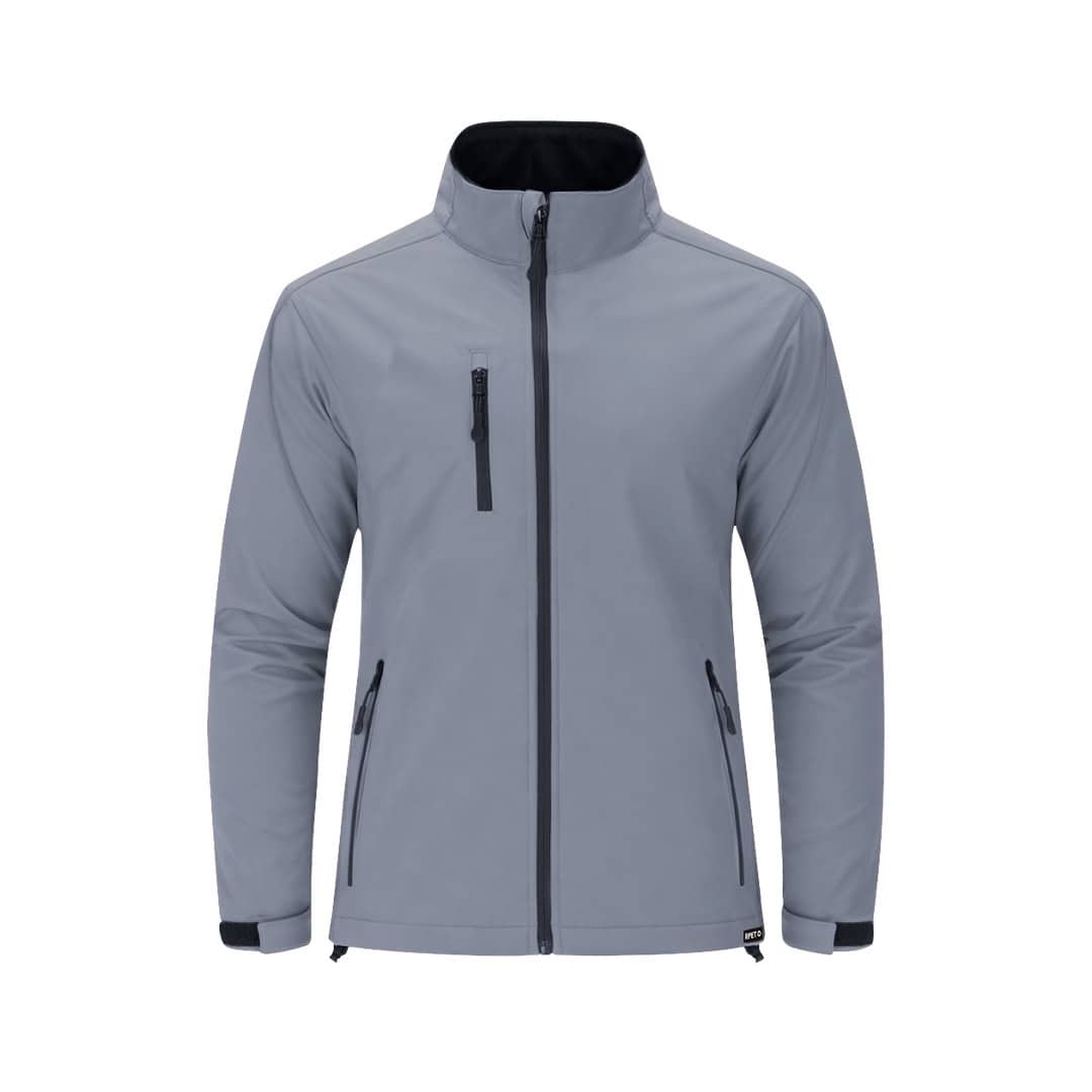 Chaqueta Soft Shell RPET confeccionada en 3 capas, de 340 g/m2. Con membrana de 8000mm, impermeable y transpirable. Exterior en Soft Shell e interior en tejido polar microfleece en color negro. Con bolsillo exterior en pecho derecho y dos bolsillos laterales con cremalleras. Con cremallera central y cremalleras invertidas en bolsillos, incluyendo tiradores de cordón en color negro. Mangas ranglán con sistema de ajuste de velcro en el puño en color negro. Cuenta con protector de barbilla a juego y cintura ajustable, con cordón elástico y tope. Distintivo RPET en el ribete de la prenda.