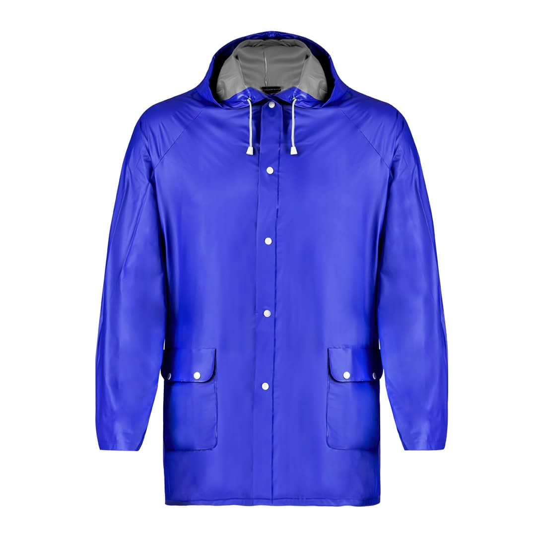 Impermeable en resistente PVC de acabado termosellado en variada gama de colores. Con capucha y cordones de ajuste, cierres de corchete y bolsillos. Disponible en tallas M-L, XL-XXL.
