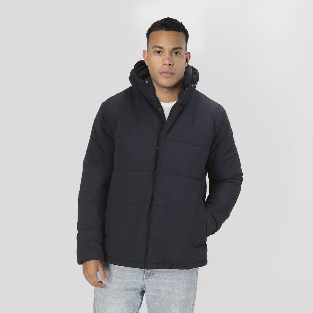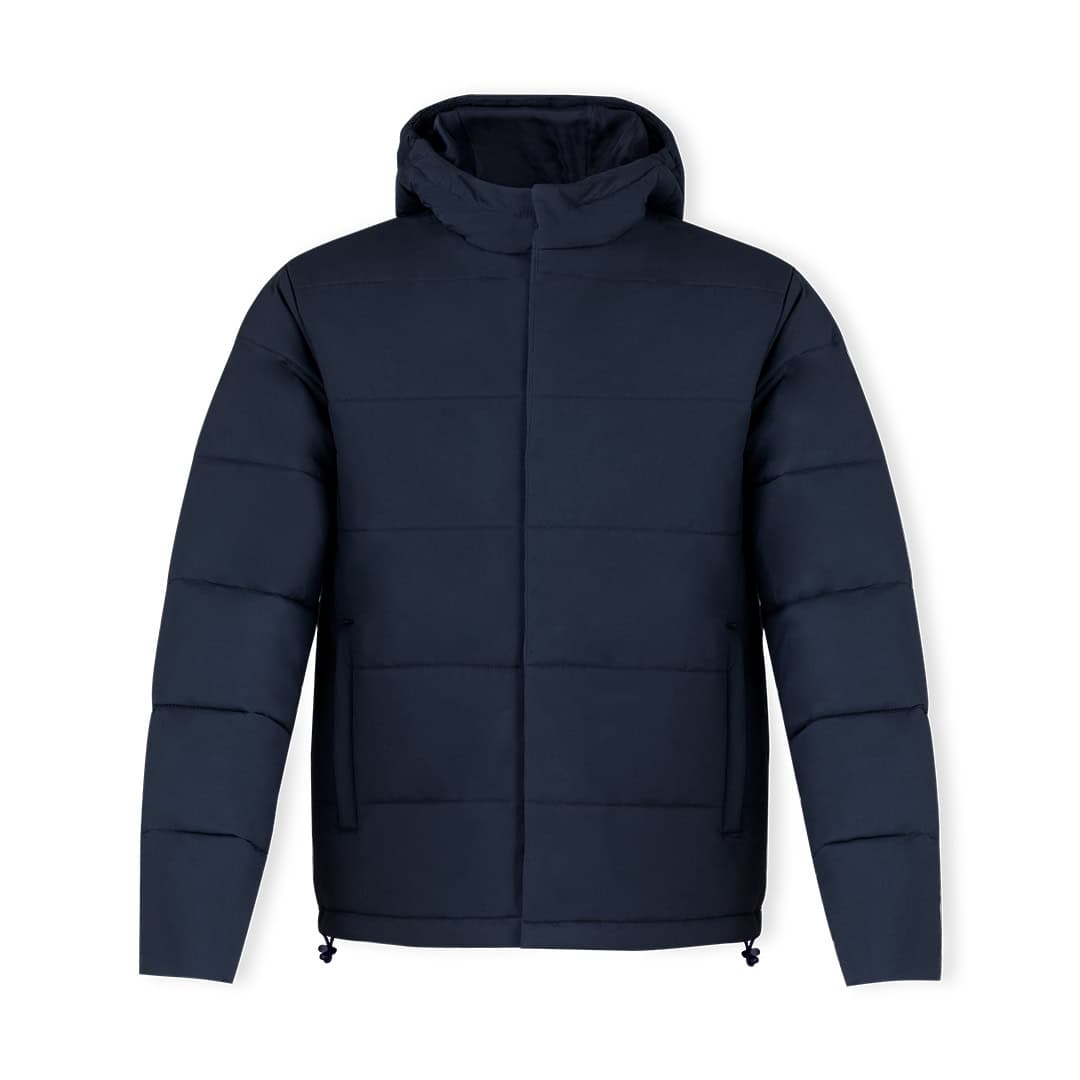 Chaqueta tipo parka, con capucha, en célido y suave material 100% poliéster. En material ligero, resistente al viento y al agua. Diseño de elegante construcción horizontal y acolchado, con capucha fija integrada. Doble cierre frontal de cremallera y corchetes. Bolsillos laterales con tiradores a juego y cordón ajustable en dobladillo. Disponible en tallas XS, S, M, L, XL, XXL.