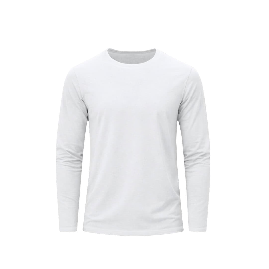 Camiseta de manga larga para adulto en color blanco de suave y agradable tacto en 100% algodón, punto liso de 160 g/m2. Confeccionada en tejido tubular, con cuello redondo acanalado 1×1 y con cubrecosturas reforzado a juego en color blanco.