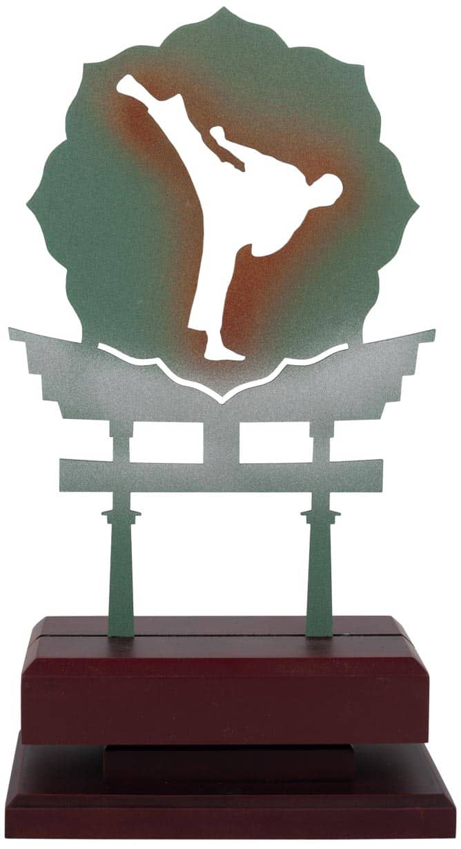 TROFEO ARTES MARCIALES METAL. REF. 1595. PEANA DE MADERATRES TAMAÑOS DISPONIBLES