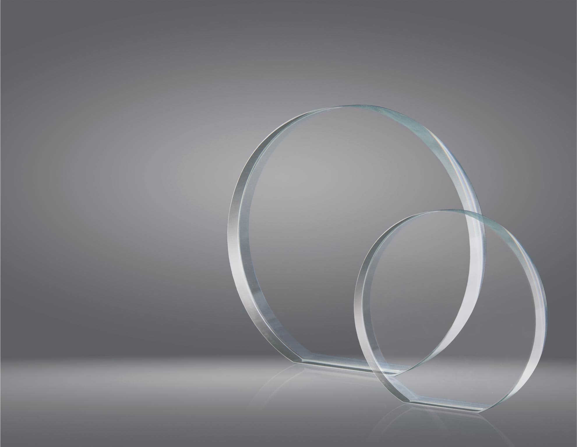 TROFEO DE CRISTAL EN FORMA REDONDA. EL GRABADO SE HACE MEDIANTE LASER O IMPRESIoN A COLORGROSOR CRISTAL 2 CMCINCO TAMAÑOS DISPONIBLES