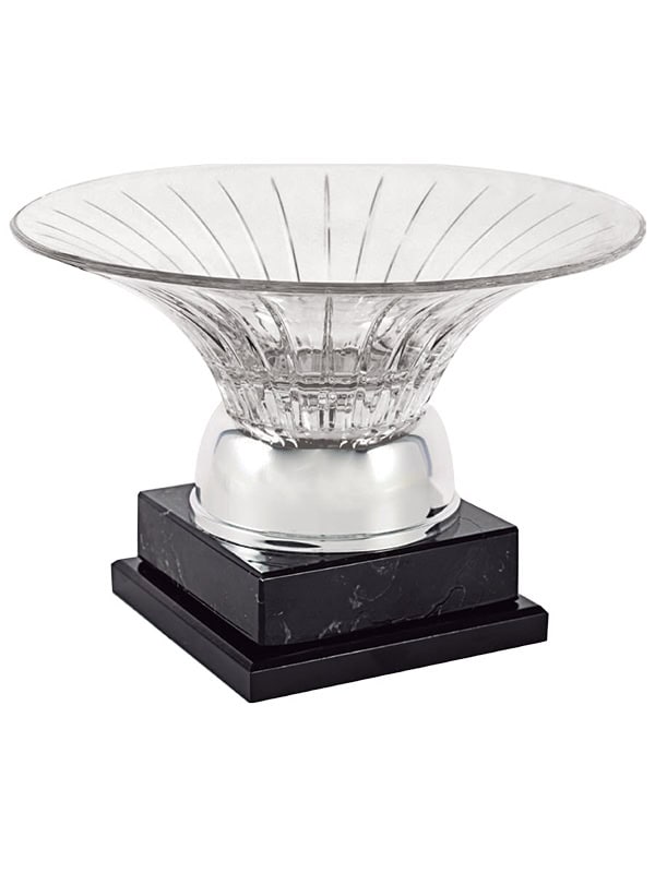 Trofeo de cristal con forma de ensaladera con estrías y peana de mármol.
