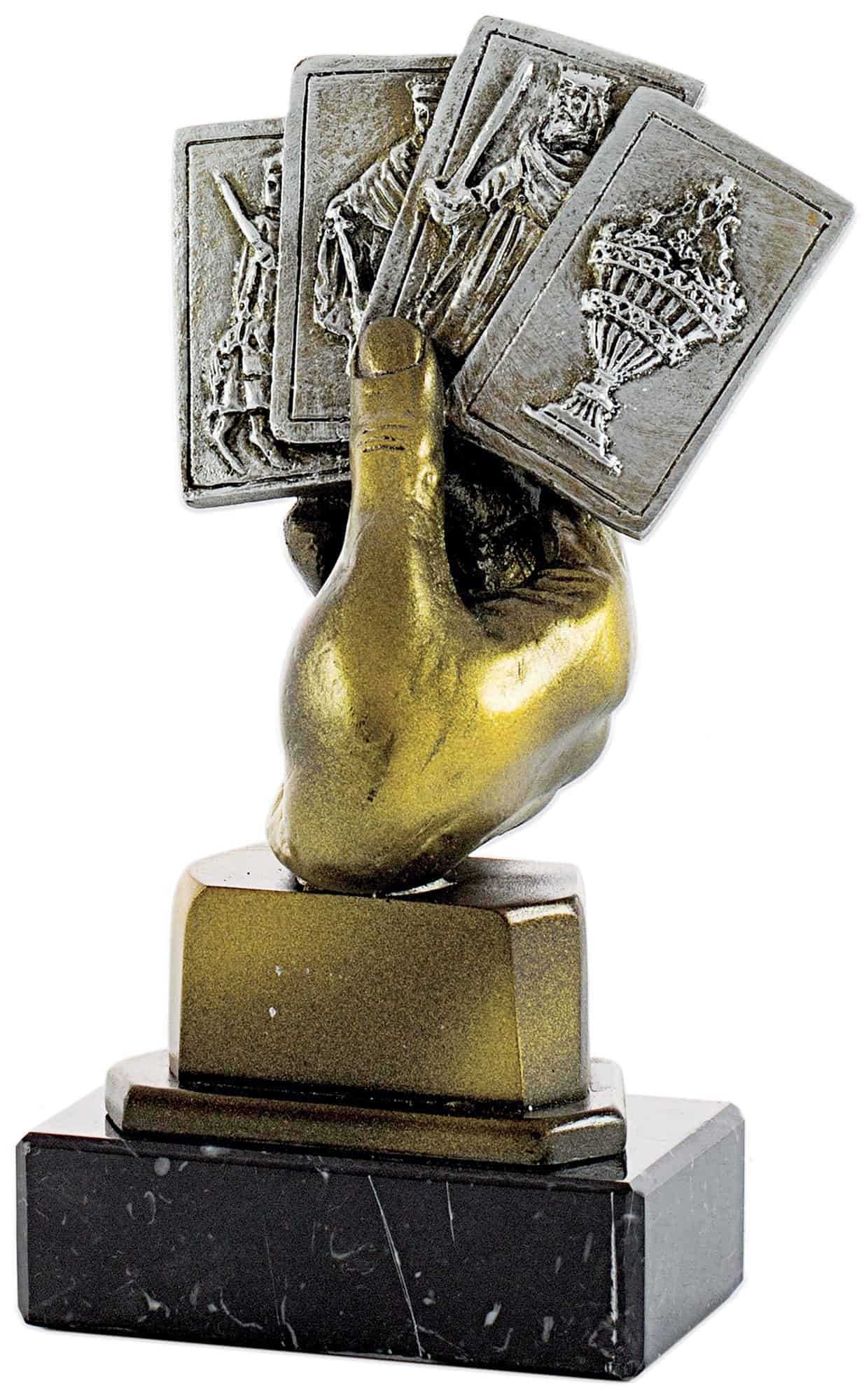 TROFEO FIGURA MANO SUJETANDO CARTAS+BASE. REF. 1566TRES TAMAÑOS DISPONIBLES