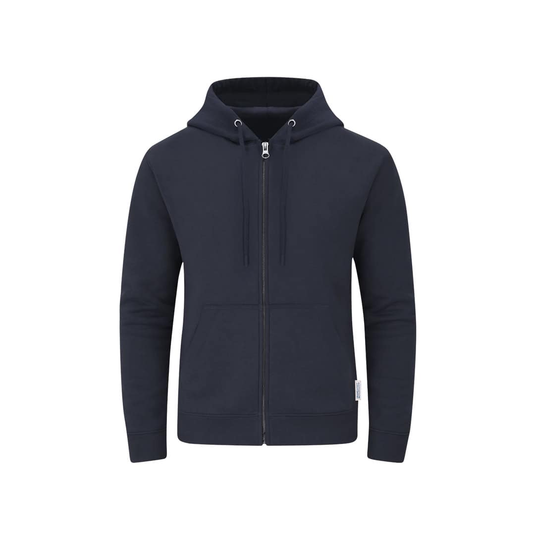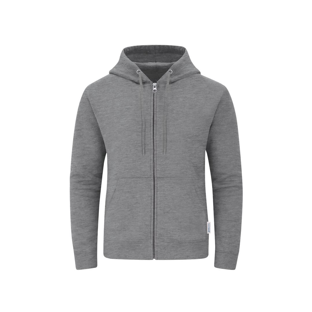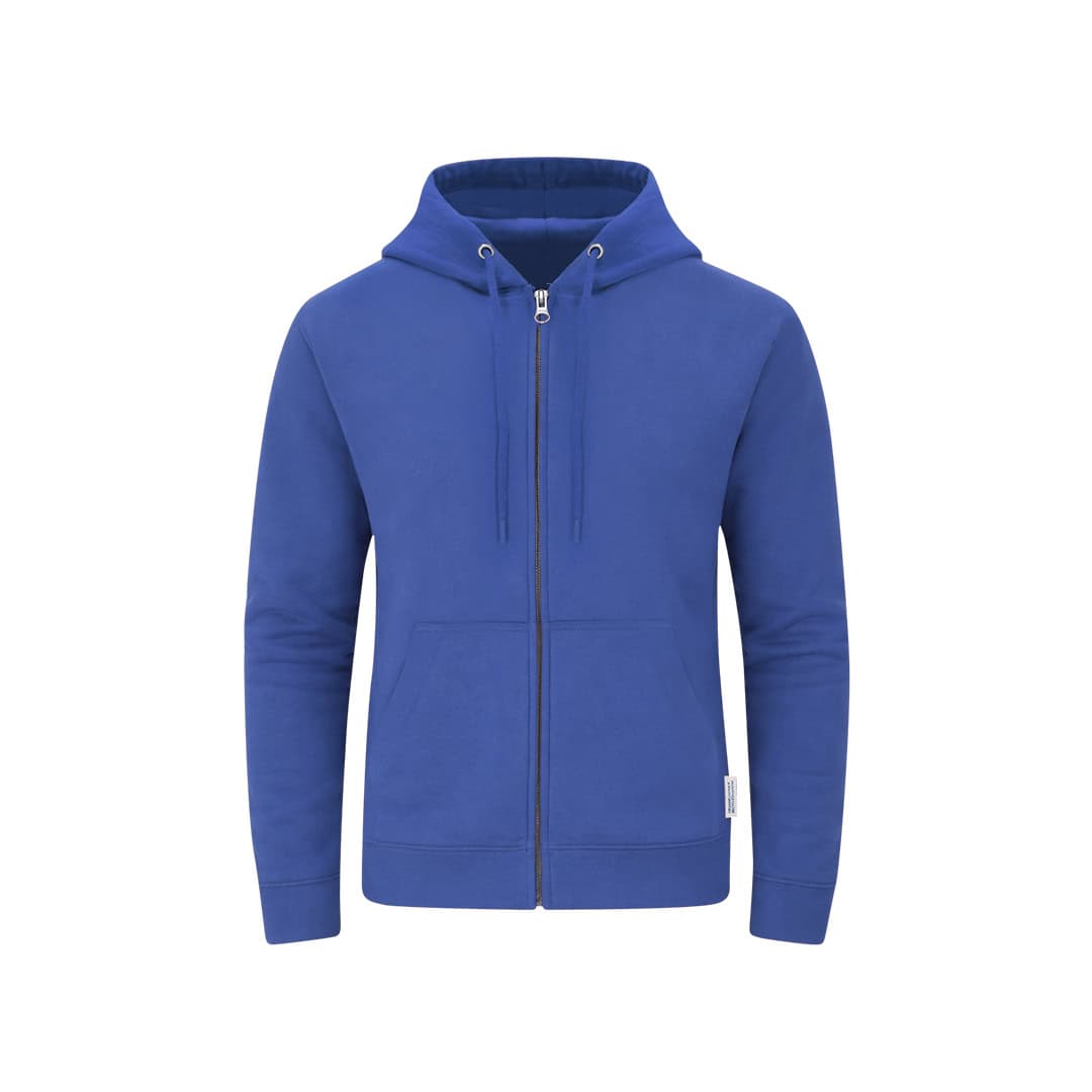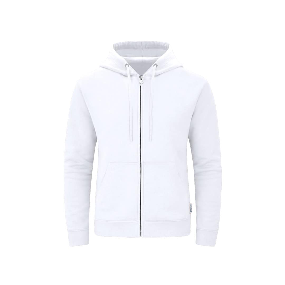 Sudadera Unisex con capucha y cremallera de Algodón OrgÚnico y Poliéster Reciclado, en suave felpa perchada de 280 g/m2. Con capucha forrada de doble capa, cordones redondos ajustables -con topes a juego- y ojales metélicos. Puños y cintura de punto canalé de elastano y bolsillo frontal tipo canguro. Apertura de cremallera oculta metélica, con cubrecosturas reforzado en cuello. Incluye etiqueta distintiva eco.
